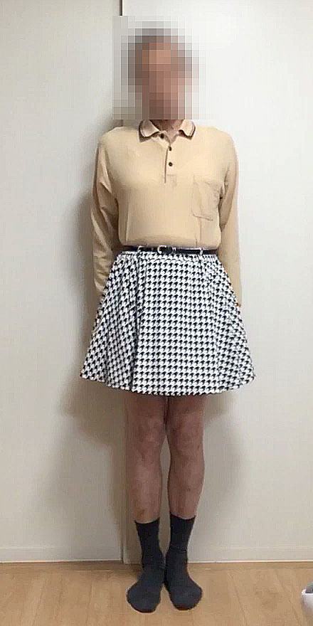 妻の前での女装生活では、上半身はいつもと変わらず下半身だけスカートを穿きました。