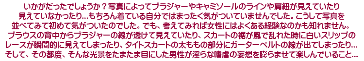 ブラジャーとキャミソールを着けています。さらにスカートの奥には特別のパンティと股縄が...