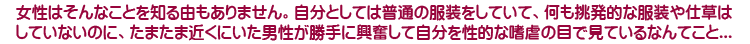 下から見上げる角度での撮影です。この時は下着の下着のラインが見えていますが、角度が違うと見えないことも...