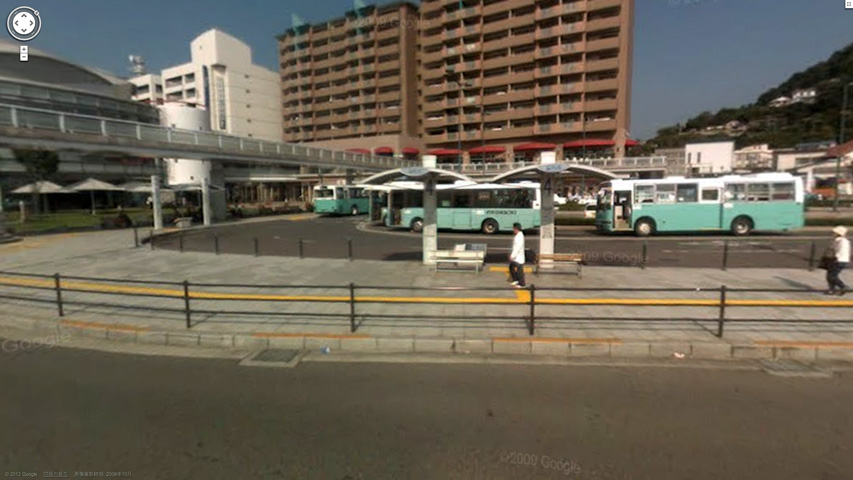 Google Earthに出ていた駅のバスセンター風景です。ちょうどこの写真の真ん中にあるベンチに座りました。![]() 純子が行った時は、こんなに人はいませんでした。それにこんなに明るくもなかった... |