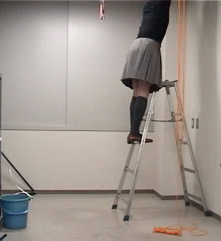 そして脚立に上って、壁の高い所も拭くように言い渡されました。え?こんなスカートで?ご夫妻の視線は純子の下半身に集中します...