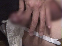 すると、意地悪な尋問係の指の入念なひとしごき、ふたしごき...最後に強く、強くしごいてトドメを刺す。 「そりゃー、出せやー!!」