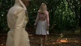 白いプリーツスカート姿のアンは、クレアとジャンに林の中に連れ込まれます。