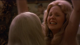 全裸にされて服従の姿勢を取るアンを指で犯しているクレアの表情...