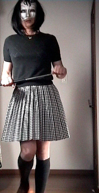 このスカートは、2009年7月以来、ウエストの関係で 穿けずにいました。でも、ダイエットのおかげで今回、着用 することができました!純子には特別な思い入れのある スカートなので、とても嬉しかった!懐かしかった... 下は今回新しく撮影した映像からの静止画です。 6月上旬の撮影から3週間ほどで再び巡ってきた幸運 でした。ギンガムとグレー無地の2種類のプリーツスカートを 楽しみました。ここではギンガムでの妄想をどうぞ... [2011.08.24] |