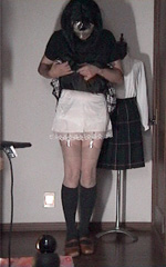 この撮影は失敗でした。なぜって、スカートの裾から、ストッキングのガーター留め用に強化した部分が見えています。