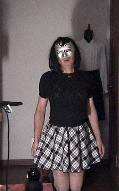この撮影は失敗でした。なぜって、スカートの裾から、ストッキングのガーター留め用に強化した部分が見えています。