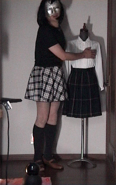 この撮影は失敗でした。なぜって、スカートの裾から、ストッキングのガーター留め用に強化した部分が見えています。