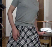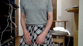 昼下がりのひと時をグレー無地のフレアーミニスカートですごした純子は、昨夜のチェックの