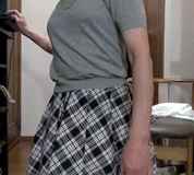 昼下がりのひと時をグレー無地のフレアーミニスカートですごした純子は、昨夜のチェックの