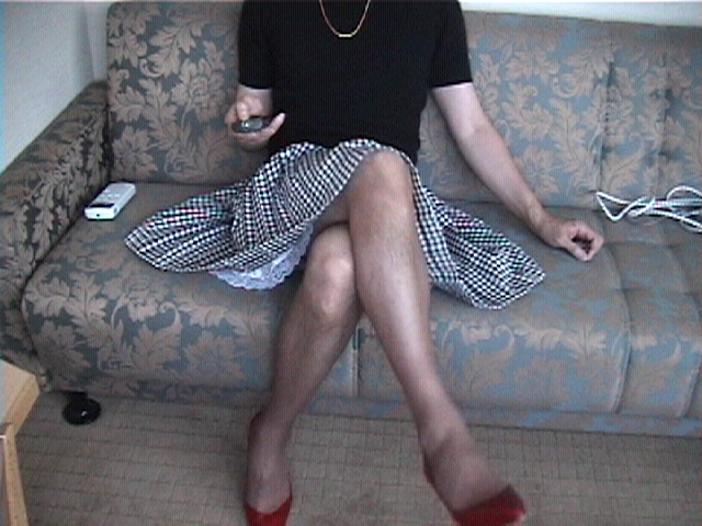 ソファに座ると、スカートがこんな風にやさしく広がるのが大好きでした。純子は、この後で電気鞭の拷問を受けることを知っています...