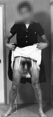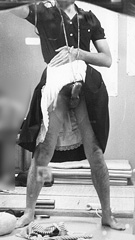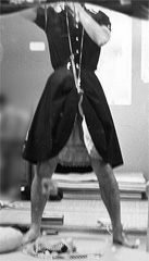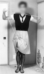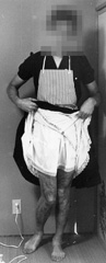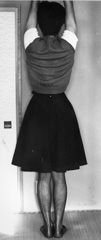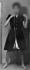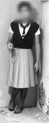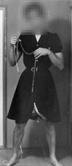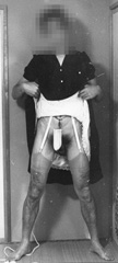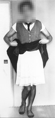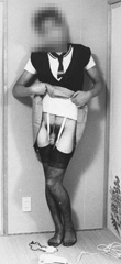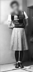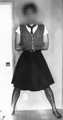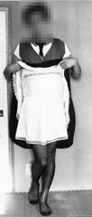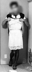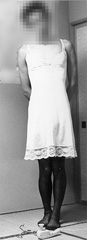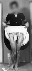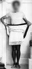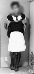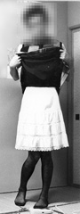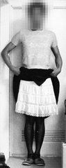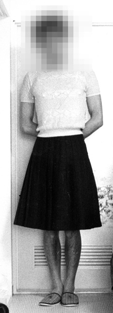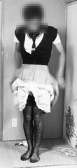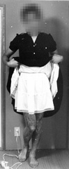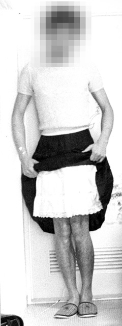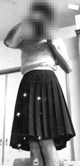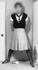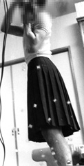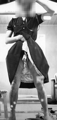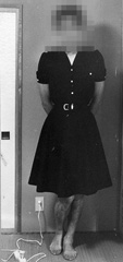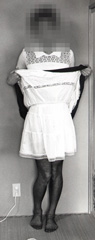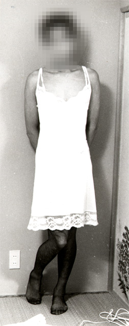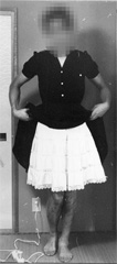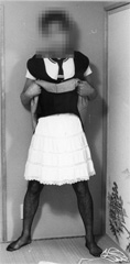 引き出しを整理していて、古い秘密のアルバムが出てきました。1990(平成2)年の頃の純子のスカート姿です。 もう処分したつもりだったのですが、実際にはネガだけをシュレッダー処分して、アルバムは残っていたのでした... 20年前のことで、まだデジカメは縁遠い存在で、アナログビデオ(VHS)は売られていましたが、純子は持っていませんでした。 その頃は毎週のように、土曜日の午後、2時間ほどでしたが、スカート姿に変身して鏡に映る自分を楽しんでいました。 写真撮影は、<恥ずかしいスカート姿を撮影される>っていう被虐的な妄想を自分ひとりで楽しむためのものでした。 写した写真を人に見せることはまったく考えませんでした。その頃は純子という名前も自分につけていませんでした。 カラー写真は自分で現像できないので、白黒フィルムを使って撮影し、焼付けまで自分で行っていました。 下をご覧になって頂ければお分かりのことと思いますが、この頃は主に膝丈のプリーツやフレアスカートを愛好していました。 アルバムに残っていたのは下の3種類のスカート姿だけです。この後、写真撮影ができなくなったのですが、その頃から、 グレーや紺無地のフレアーミニスカートを着けるようになりました。今から見るとスカート丈が長いなあって思います。 スカート女装の最初から、純子はスリップとガーター・ストッキングに執着してきました。この撮影でも、いつも着けています。 ペチコートは、初期の頃は着用しませんでしたが、お気に入りのフレアペチコートをゲットした時以来、愛用しています。 今は、そのフレアペチコートとショートペチコートをスリップの上に重ねていますが、この時はスリップの代わりにキャミソールでした。 この撮影の時も大抵着けています。ただ、この頃の純子は、ブラジャーそのものにはなぜか関心がありませんでした。 この時は、スリップの下にキャミソールかガーター付きのボディスーツを着けて、肩紐を左右2本ずつにしていました... |