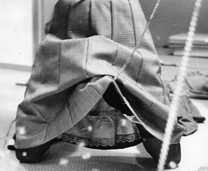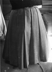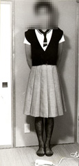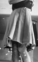 | 純子が性に目覚めた中学生の頃から、スカートと言えば紺色無地のフレアースカートでした。紺色無地のプリーツスカートには 関心がありませんでした。女子中学生が着けていて、遊んだりしている時に翻ったスカートの裾から白いスリップ(シュミーズ)のレースが 見える時はハッとすることもありましたが、特に執着はなかったんです。でも、就職してから、職場の先輩女子社員の私服が、紺色無地の プリーツスカートだったんです。痩せぎすで美人ではなかったけど、そのスカートに包まれたヒップラインがたまらなかった...それで、紺無地の プリーツスカートにも俄然関心が高まりました。この写真のスカートは、銀座ゲルランです。事情により、純子が一人でお店に入って、 このスカートを買い求め、そして、外で待っていた妻に渡しました。純子がお店でスカートを買ったのは後にも先にもこの時だけです。 腰の部分に縫い取りがあって、ヒップを引き締めてくれるデザインです。上の3種類のスカートは、すべてに裏地が付いています。 |