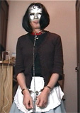 | 純子は後ろ手錠で拘束されたので、首輪からの鎖は純子のフレアミニスカートの裾を割って手錠と連結します。冷たい鎖が、スカートの奥の太ももや陰部に時々触れて...あっ...純子を辱めるためのスタイル...ね...この格好で引き回しにかけられる懲罰...恥ずかしい晒しの刑ね...純子にふさわしいわ。 |