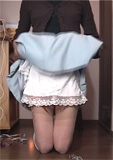 彩子さまによる調教ライブの日の午前中の撮影です。もう調教で指定された服装の純子です。 ただし、肛門の責め具と性器亀頭部のバイブはまだつけていません。バイブは性器の根元だけです。 なぜって?それは、純子が彩子さまに射精管理されているから...誤って射精しないように、というためです。