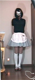 フレアーミニスカート姿の性奴隷純子が後ろ手錠をかけられた格好でひざまずいて悶えています... こんな短くて裾広がりのスカート姿で手錠拘束されたら、どんないやらしい凌辱を受けても抵抗できません。 淫靡な無防備感を愉しむ被虐変態女装趣味の純子です...いやらしい手でスカートの中を蹂躙される歓び...