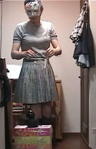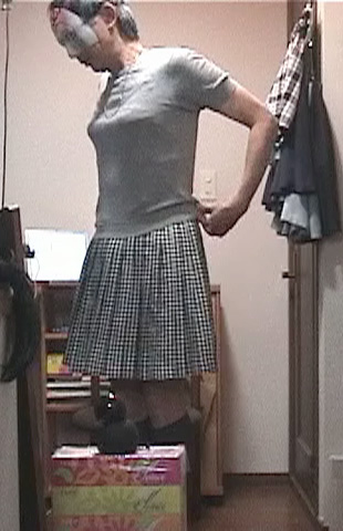 このスカート姿の純子が、後で思い切りはしたなくって、いやらしい姿態や行為を強制されるんです。どうぞいろいろにご想像ください。