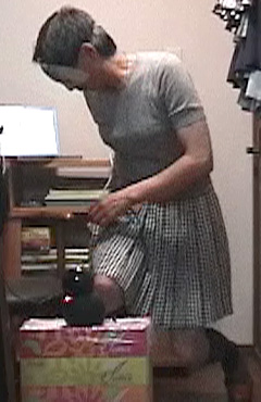 彩子さまにM字開脚の姿勢を取るようにご命令されました。とても屈辱的な姿勢だわ... だって、スカートの中で両腿が大きく開いて、からだの敏感で恥ずかしい部分が剥き出しに... そんな恥ずかしさに耐えていると、スイッチが入って、肛門のバイブレータが動き出したの...ああ...