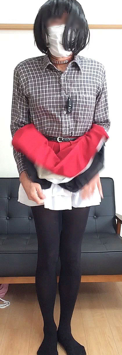 左は明らかにチェックですが、右もチェックです。ちょっと分かりにくいですが、薄い色で細かいチェック...残念ながらどちらも紳士もの...赤い首輪が無残です。
