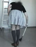 | 純子は部屋の掃除をしています。これからGMさまのきびしい懲罰を受けるために、貸し倉庫の部屋を自分で掃除させられているんです...短い箒と塵取りでの掃除なので、屈むとスカートの中が見えてしまいそう...恥ずかしいパンティーを見られてしまいそう...これからこの床の上で純子の生き地獄が始まるんだわ、って思うと、スカートの中がつらくなってきます...ああ、恥ずかしいスカート... |