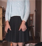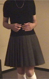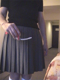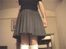 ♪♪♪♪ この日の純子も、いつものように被虐的な妄想に耽りまくりました。スカート姿の自分を鏡に映すと、たまらなく嗜虐的になってしまって... このグレー無地のプリーツスカートはこれまで何回も着用しています。純子愛用のギンガムプリーツミニより少し丈が長く、より上品な印象です。 実は、5月にライブカメラの前に立った時、夜の部で着けていたのがこれでした...<陽菜さま>とおっしゃる方のご命令でハイヒールとともに... あの日の昼下がりの部では、<陽菜さま>のほかに、<彩子さま>、<あずささま>などがいらして下さり、純子は寄ってたかって弄ばれました。 <彩子さま>には、夜の部でもそれから後日にも、スカート姿の純子を思い切り辱めて頂き、その時の純子の気持ちまで訊問されました。 純子は、皆さまに辱められいたぶられたあのライブの時のからだの感覚が忘れられません... 静かな部屋でスカート姿で妄想に耽っていると、つい、先日のライブでのことが...ライブでの純子のからだの性的な感覚が、生々しく甦ってきました。 恥ずかしいスカート姿を見られるだけじゃなく、性器と肛門に装着されたバイブレーターを遠隔操作でオンオフされて辱められる時のからだの感覚... チャットの命令で、カメラの前に立たされたり、後ろ向きで壁に手をついてお尻を突き出さされたりした状態で、肛門のバイブで苛められる感覚... 遠隔操作でバイブのスイッチが入る時に、その方の<純子を辱めてやろう、この変態で遊んでやろう>という意図を感じて、純子は高ぶります。 軽蔑と嗜虐の視線で見られるだけで、純子には十分に刺激的です。さらに、そんなスカート姿の純子を意識的に嬲って頂けるなんて! ここには、ライブでスカートの中の性器や肛門を陵辱された時の屈辱感と性的快感を思い出しながら撮影した動画をアップします。 肛門を犯した責め具にローターを装着して、自分でそのスイッチを入れた時、ああこの感覚!...って感激してしまいました。 ああ、純子はまた皆さまにライブカメラの前で辱められいたぶられたいです!... この秋から冬にかけては、何回かスカート姿に変身してライブカメラの前に立てる予定です。皆さま、ぜひお越しくださいませ。 また、ライブでなくても純子に何か意地悪な服装や姿態や行為を命令したいとお思いの方は、ご遠慮なく純子にお命じ下さい。 メールはこちらです。<純子への命令よっ!> 10月25日に予定している純子のスカートライブはこちらをご覧になってください。